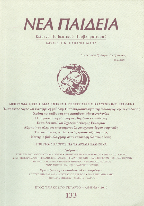 Το 2010 στο Περιοδικό «Νέα Παιδεία», έτος τριακοστό τέταρτο, τεύχος 133, και στις σελίδες 16 και 17, δημοσιεύεται κείμενο της Ευαγγελίας Καπετάνου με τον τίτλο:
