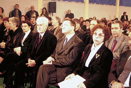 Απρίλιος 1994. Από την εκδήλωση για τη μετονομασία του ΕΠΛ Νέας Φιλαδέλφειας σε ΕΠΛ Νέας Φιλαδέλφειας “Μίλτος Κουντουράς”. Από αριστερά η κ. Α. Ιορδανίδου, η κ. Κ. Φυσάκη, ο κ. Φ. Κ. Βώρος. Στο βήμα είναι ο καθηγητής κ. Φ. Ι. Κακριδής.